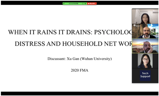 此外,甘煦同学作为评论人还参加了“Household Wealth and Decisions”分论坛并点评了由新西兰梅西大学Adnan Balloch和英国杜伦大学Christian Engels、Dennis Philip合作的论文“When it rains it drains: Psychological distress and household net worth ”。会议期间,甘煦同学听取了多位专家学者的报告,并与相关领域参会学者就共同关心的学术问题进行了充分讨论。