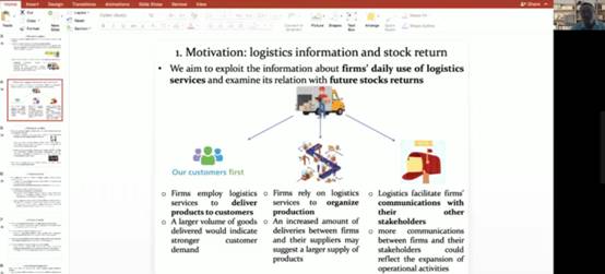 2021年1月5日下午,珞珈经管高端论坛第二十六期通过腾讯会议在线举行。此次论坛主讲人为香港中文大学(深圳)经管学院张博辉教授,论坛主题为“Does Express Delivery Run ahead of Stock Price?”(特快专递走在股价之前吗?)。本次讲座由金融系和武汉大学金融科技研究中心主办,校内外约50余位师生参加本次学术论坛。