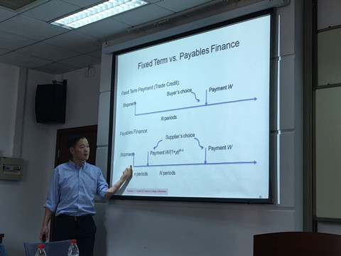 陈力教授的讲座主题涵盖供应链技术及服务模式创新对未来供应链的影响及重塑,主要以论文宣讲和问答环节两部分组成。讲座伊始,陈力教授以3D打印为例,介绍了3D打印技术的在日常生活、产品设计中的应用以及3D打印技术对线上、线下不同类型企业的产品生产、物流运输、仓储库存、市场经营等方面的影响,将研究话题聚焦到供应链服务创新上。随后,陈力教授结合宝洁公司供应链金融的创新模式阐述了供应链金融的研究现状与意义并对供应链金融的作用机制有了具体的讲解:一是增强了核心企业的资金周转能力让企业在日常经营中拥有更为滞后的应付账款账期,以获取现金流周转灵活性。二是为核心企业的中小型供应商提供现金流的灵活性。因此,供应链金融能够以核心企业为轴心,为供应链企业与商业银行带来三赢的局面。最后,他对正在进行的研究文献进行了阐述和分析,解释其研究的意义:即通过对供应链金融中应收账款融资模式的实践分析,进行建立模型,并重现三方合作交易过程,最终给出了商业银行利率的定价依据。