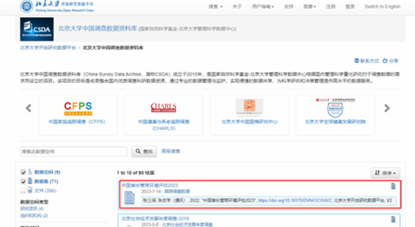 图:数据库在北京大学开放数据平台的界面(红框内)