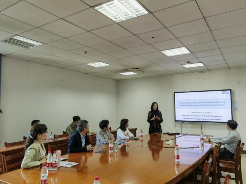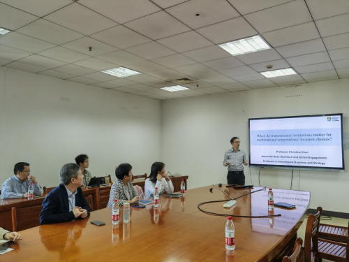 2023年11月1日上午,第八十五期珞珈经管发展论坛在工商管理系办公室B352举行。香港大学商学院陈文娟教授应邀为海角社区 师生带来了主题为“When do transnational institutions matter for multinational corporations’ location choices”的讲座。本次讲座由海角社区 院长聂军教授主持,工商管理系主任陈立敏教授以及吴先明教授、夏清华教授、刘学元教授、涂乙冬教授、李梅教授、刘艳教授、刘明霞教授、龚红教授、陈建安副教授、江诗松副教授、李绍龙副教授、周伟副教授、余泽忠老师、胡羚燕老师、雷昊老师、吕梦老师等工商系老师和博士生们参加讲座。