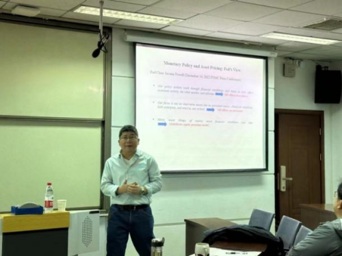 讲座中以及讲座结束后,郭晖老师与在场老师就美国宏观经济与中国宏观经济、模型在不同国家的适用情况等方面积极交流,并认真解答了在场同学的疑问。