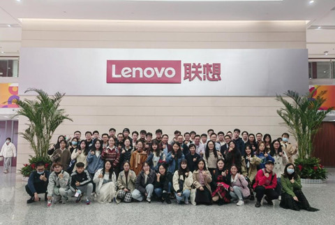 参观结束后,联想武汉产业基地的负责人与武汉大学师生在基地大厅合影留念。