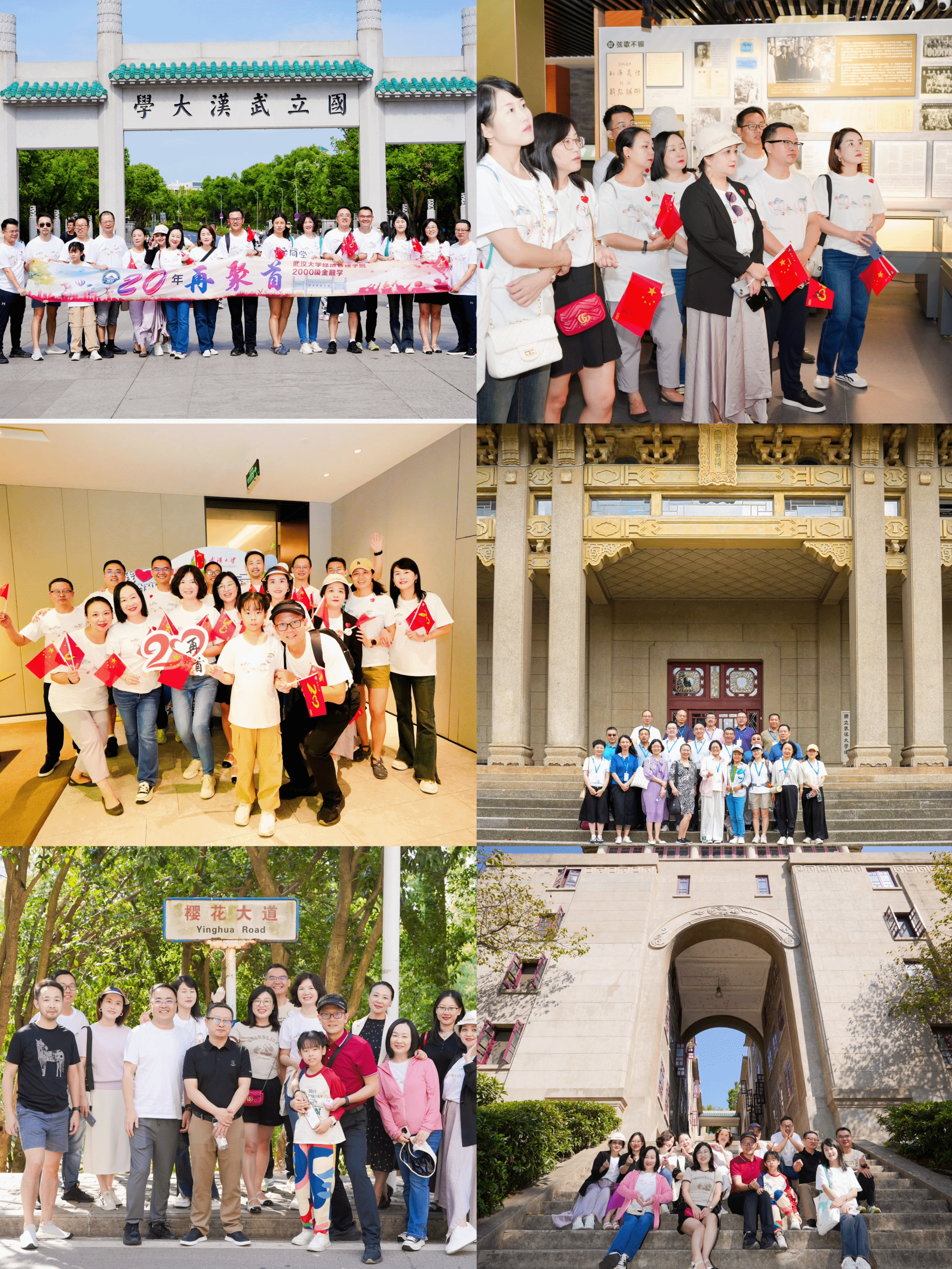清晨,校友们从行政楼出发,登上珞珈山,参观周恩来旧居,步行至樱花大道,在校史馆合影留念,再到桂园食堂共进午餐,一砖一瓦一草一木仿佛述说着这三十年的点点滴滴。
