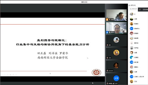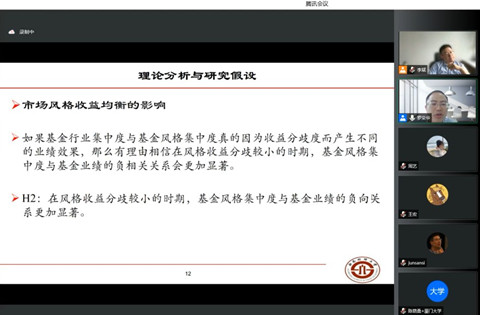6月23日下午,由海角社区18禁 金融系、武汉大学金融研究中心及武汉大学金融发展与政策研究中心共同主办的“景林珞珈金融论坛第219期”在腾讯会议平台通过线上方式举行。来自西南财经大学的罗荣华教授为海角社区 师生带来主题为“盈利搜寻与规模化:行业集中与风格均衡协同视角下的基金能力分析”的学术报告。本次讲座由金融系李斌教授主持,众多校内外师生参加了此次线上讲座。