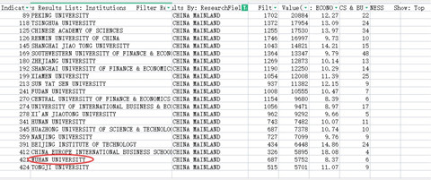 据悉,全球经济学与商学学科有427个机构入选,中国大陆有20所高校进入前1%(含中欧国际工商学院,不含中国科学院),我校在大陆高校排名第19名。