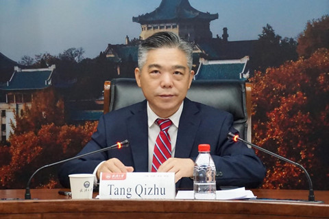 唐其柱副校长简要介绍了武汉大学的基本情况,他指出武汉大学非常重视与德国高校的交流合作,值此中德建交50周年之际,希望以本次“中德5+5高端对话”为契机,进一步促进双方在能源转型、低碳发展、碳中和等领域的深入交流合作,并进一步为推动两国人文教育交流合作作出新贡献。