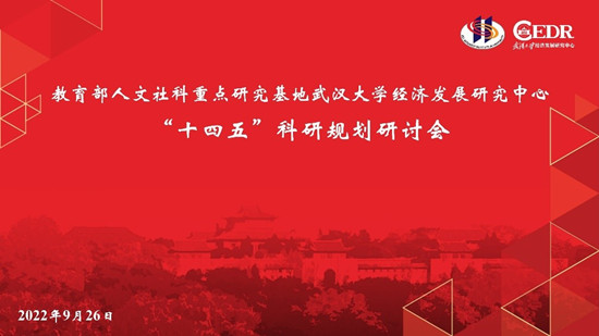2022年9月26日,教育部人文社科重点研究基地武汉大学经济发展研究中心召开“十四五”科研规划研讨会,会议以线上线下相结合的方式举行。来自国务院发展研究中心、复旦大学、上海交通大学、南京大学、华中科技大学和武汉大学等高校和研究机构的著名学者,以中心学术委员会委员和中心“十四五”科研规划重大项目负责人的身份参加了本次研讨会。