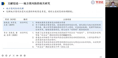 接下来,郭晔教授从融资平台和地方债风险两方面对过往文献进行了梳理。她介绍道,面对国内大量学者做的相关研究,该项研究的边际贡献有如下几点:第一,从融资平台整合这一较少被关注的视角来探讨地方债风险的化解手段;第二,对融资平台的整合升级进行了较为系统性的探讨;第三,提供其经济后果的大样本经验证据。