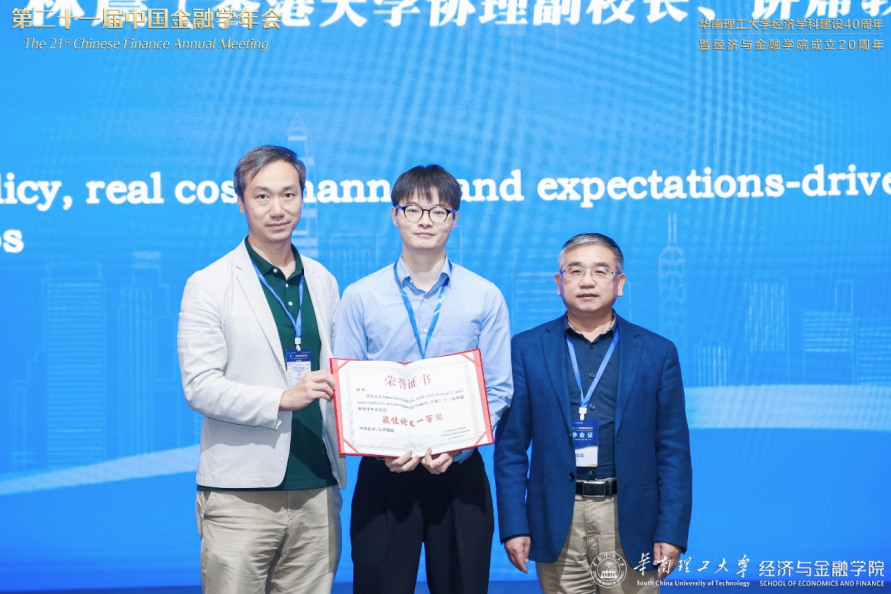 2024年11月8-10日,第二十一届中国金融学会年会在华南理工大学顺利召开,本届年会共收到1183篇中英文论文投稿,海角社区 青年教师聂禾独立撰写的“Monetary Policy, Real Cost Channel, and Expectations-Driven Liquidity Traps”论文从1183篇投稿论文中脱颖而出,荣获本次年会唯一一等奖并受邀登上大会讲坛宣讲论文。