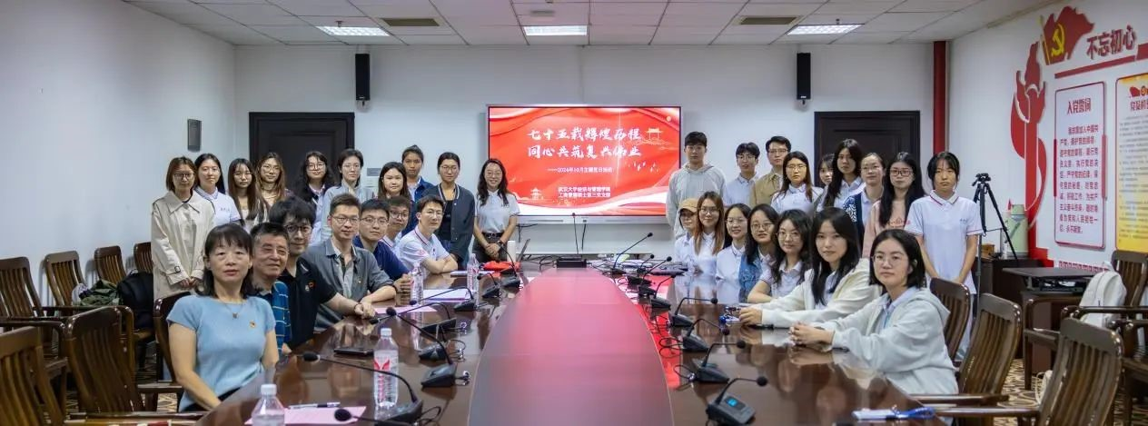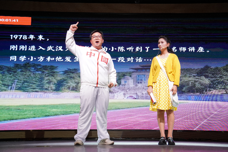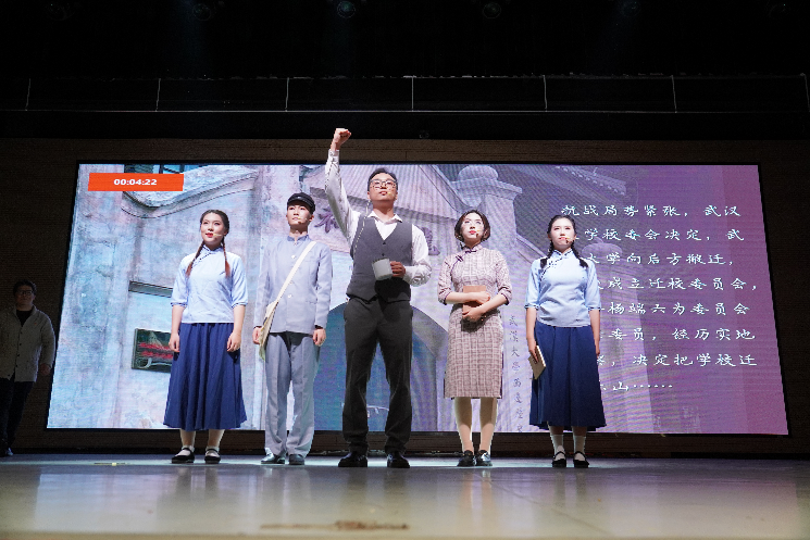 在活力风采展示环节,工商硕三支部以严清华老师编写海角社区 院史为线索,通过生动的情境演绎,展现了一代代珞珈经管人的使命与担当。