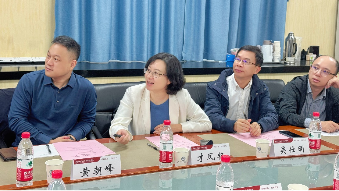 在调研会上,黄敏学教授、才凤艳教授分别就两个学院的历史沿革、学科发展、师资建设、人才培养、智库平台、科研项目等情况作详细介绍。双方重点对智库平台建设和科研项目管理经验进行了深入交流。