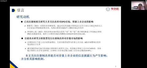 该项研究主要关注注册制改革对存量上市企业的信息披露行为的影响。陈海强教授详细阐述了该项研究的研究背景、计量方法、影响机制、研究发现等内容,同时也指出了该项研究的突破和注册制改革的现实意义。