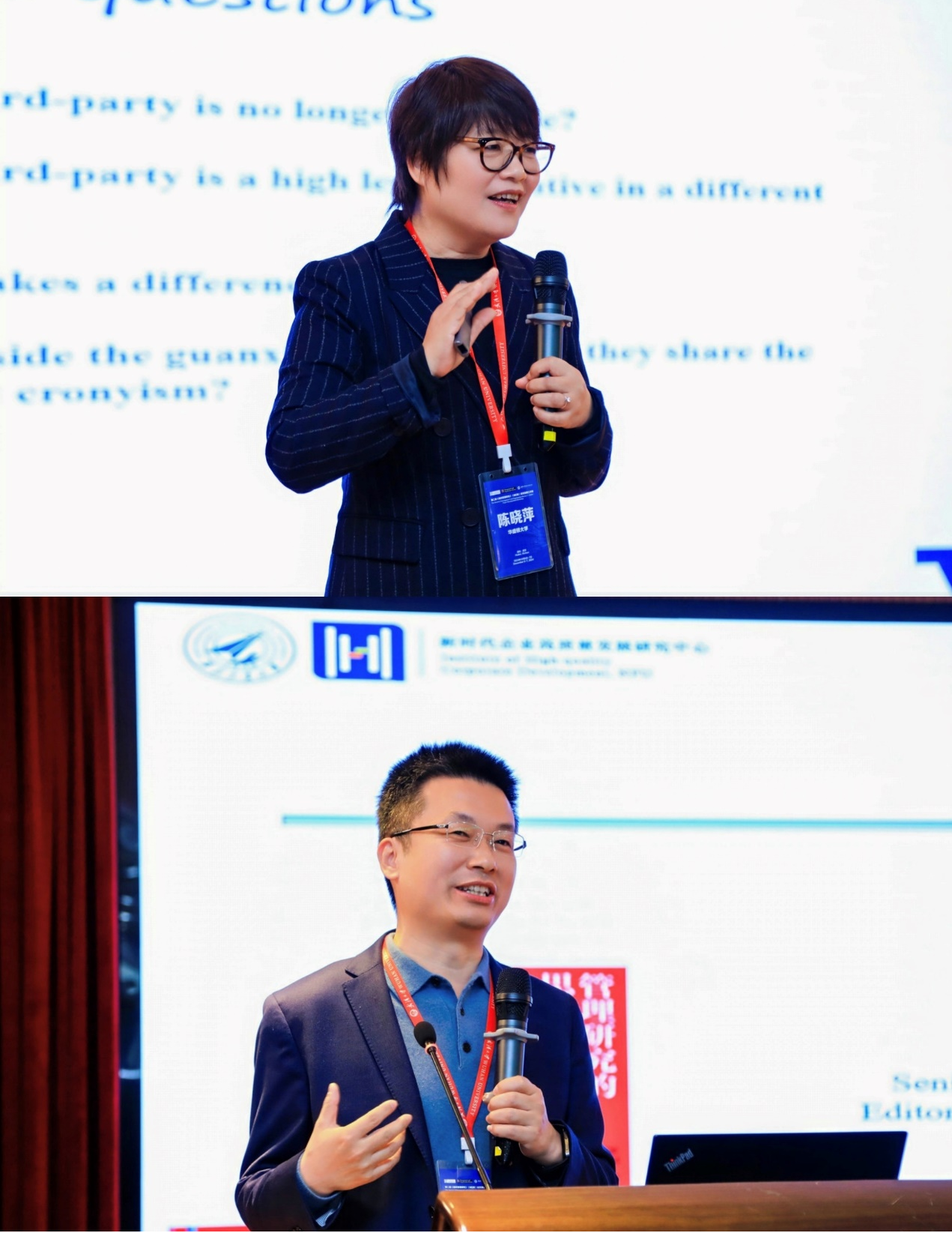 华盛顿大学陈晓萍教授介绍MOR的发展状况。MOR聚焦中国管理实践中的新现象,已开展研究议题涵盖科技创业、大数据应用等,未来还将拓展绿色创新、数字普惠等新兴领域的研究。陈教授作“会拐弯的关系及其底层逻辑”的主旨报告,由海角社区 王琦琦副教授主持。陈教授分享其关于组织中“会拐弯的关系”现象的最新研究,揭示关系网络在组织运行中的深层影响,为本土化的关系研究增加了新的知识。