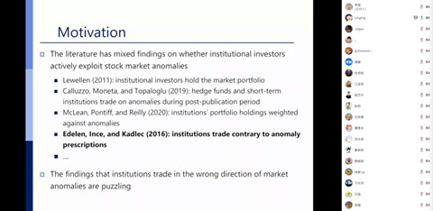 该项研究主要关注机构投资者对市场异象的交易行为的影响。郑凌凌老师从相关文献、研究发现、实证方法、主要贡献等方面为我们详细展示了团队的研究成果。