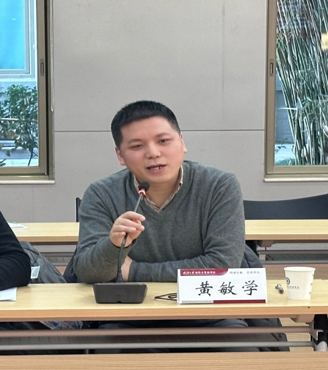 副院长黄敏学围绕科研工作提出要以打造大型科研团队、科研项目为突破口,整合资源、汇聚优势、统筹规划、形成合力,通过打造学院科研品牌助力“双一流”建设,为学校和学院事业发展贡献力量。