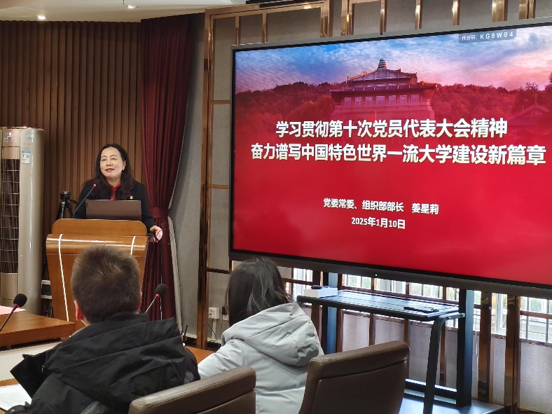 在宣讲中,姜星莉强调,武汉大学第十次党员代表大会总结了第九次党员代表大会以来发展成就,分析了当前所面临的历史方位和使命任务,明确了未来五年乃至更长时期的发展战略与目标。大会提出了“两步走”战略:到2029年,武汉大学要跻身世界一流大学行列;到2035年,力争成为世界一流大学前列。这一战略不仅为学校的发展指明了方向,也为每一位党员注入了强大的动力与信心。