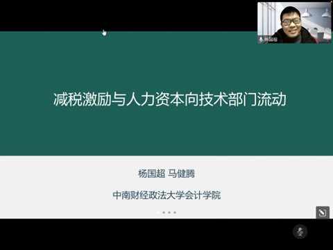 然后,杨国超教授具体介绍了研究的样本选择过程和模型设定,并对主要的回归结果进行了展示和总结。通过实证检验,杨国超教授指出他们的主要发现是,在获得高新技术企业认定后,企业高学历员工占比和技术员工占比显著增加,并且高学历学员工和技术人员的薪酬也显著提升,这一基准结论在考虑劳动力冲击的影响、采用倾向得分匹配、采用熵平衡匹配等稳健性检验后依然成立。与此同时,杨国超教授指出税收优惠政策通过降低企业的税收负担、提升针对人才的政府补助和扩大招聘范围三条途径促进了人力资本向技术部门的流动。在通过高新技术企业认定后,企业的专利数量也明显增加,创新能力显著提升。此外,税收优惠政策也会因管理层的特征、企业类型以及企业所处的地区特征而异,短视的管理层、非智力密集型企业、不受产业政策支持的行业以及税收征管强度较弱的地区,税收优惠政策对劳动力结构的影响更为明显。