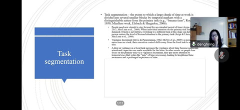 本次讲座围绕邓红教授最新发表在AMJ上的论文展开,邓教授提出了两种可以加速员工经历时间流逝的新时间工作设计特征:时间可预测性和任务分割,并得出时间可预测性和任务分割会影响经历的时间流逝,而时间流逝又会影响工作绩效的研究结果。