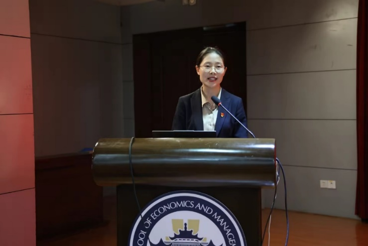 应用经济学硕士第一党支部书记严瑞松领学习近平总书记关于"经济工作必须统筹好几对重要关系"的文章,强调统筹市场与政府、供给与需求等关系对经济高质量发展的关键作用。硕士第二党支部宣传委员杨壁蔓结合党的二十届三中全会精神,解读金融改革重大任务、资本市场改革与科技金融创新的政策内涵。