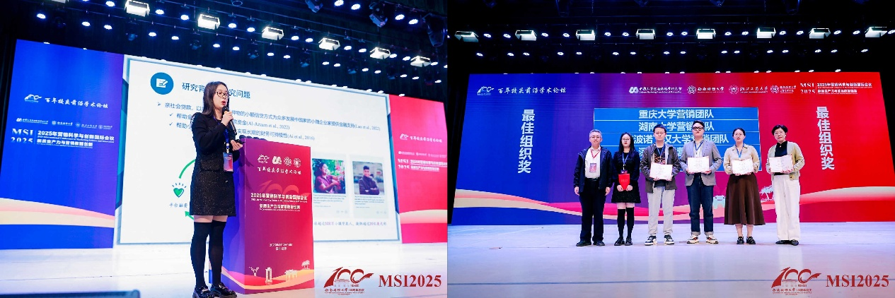 4月13日,市场营销专业师生代表在各平行论坛汇报展示消费行为分析等前沿领域的多项最新研究成果,选题既回应企业实际需求又关注社会热点议题,展现了扎实的学术功底与创新实践能力,获得与会专家学者的高度评价。其中曾伏娥教授团队研究“Effects of Happiness Intensity on Prosocial Lending Campaign Success: A Positive Psychological Capital Perspective”荣获MSI2025学术前沿奖,体现科学研究对社会公益实践的实质性推动。大会闭幕式上,我校营销团队获得MSI国际学术委员会特别授予“最佳组织奖”,充分肯定了团队在学术组织方面的突出表现及在市场营销领域的整体研究实力。