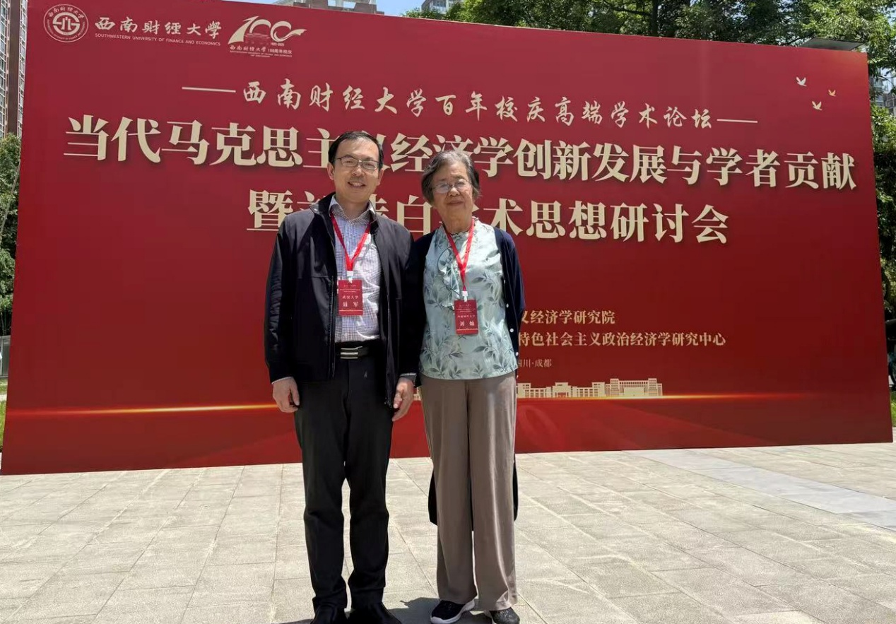5月11日,海角社区 院长聂军教授一行代表学院参加由西南财经大学举办的“当代中国马克思主义政治经济学创新发展与学者贡献暨刘诗白学术思想研讨会”。会议期间,聂军院长拜访了刘诗白先生的女儿刘灿教授,并请刘灿教授转达武汉大学经管学院师生对刘诗白先生百岁华诞的诚挚祝福。