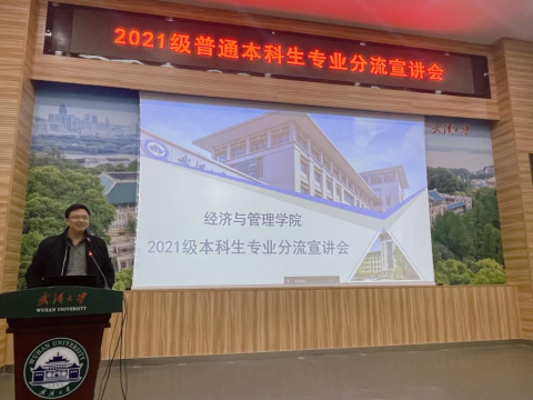 4月27日下午,学院2021级普通本科生专业分流宣讲会在景林报告厅顺利举办。院党委副书记李好,副院长孙祥,金融系李斌教授,财政与税收系龚锋教授、卢盛峰教授,保险与精算系杨霞副教授、王正文副教授,世界经济系李锴副教授,市场营销与旅游管理系黄敏学教授、曾伏娥教授,管理科学与工程系方德斌教授、高宝俊教授、戴宾教授、王恺教授、冯华副教授、罗丽姿特聘副研究员,工商管理系邓新明教授、杜旌教授、吴欢伟副教授、温兴琦副教授,会计系赵良玉老师、周楷唐特聘副研究员,以及各专业师生代表亲临宣讲会为2021级近五百名参与专业分流的同学答疑解惑,增进学生对本科专业的了解,合理规划未来发展方向。宣讲会由本科教学管理办公室主任王芳老师主持。