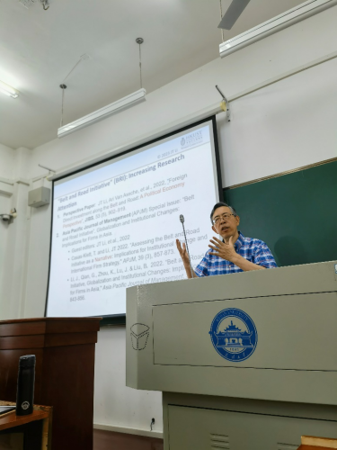 为了更好地帮助同学们理解每个主题,李家涛教授挑选了四篇优秀论文并邀请同学们进行小组论文汇报。四个小组依次汇报了以下四篇论文,第一篇来自战略管理期刊SMJ,其他三篇来自国际商务研究期刊JIBS,分别为1)The liability ofopaqueness:State ownership andthe likelihood of dealcompletion in internationalacquisitions by Chinese firms;2)Adopting knowledge from reverse innovations? Transnational patents and signaling from an emergingeconomy;3)Foreign Direct Investment along the Belt and Road: A Political Economy Perspective;4)Ecosystem Social Responsibility in International Digital Commerce。