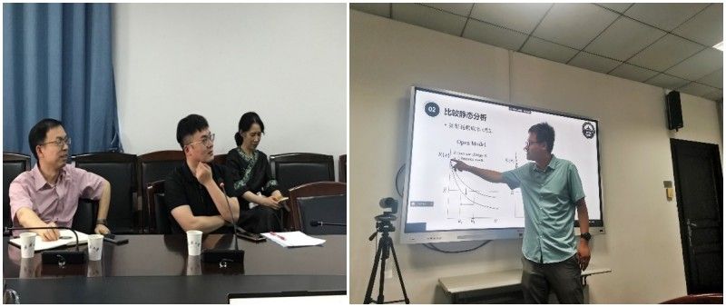 聂军教授、刁莉教授、李旭超副教授就通勤成本、城市边界、环境污染等问题与逄老师进行了细致的交流探讨。聂军教授指出,城市经济学基本模型的核心思想是考察收入等外生变量变动导致人口的再分布,进而对城市的房价和地价梯度函数产生影响。刁莉教授认为,AHP层次分析法是分析企业选址行为的另一个有用工具。李旭超副教授就城市经济学基本模型的相关设定进行了提问。