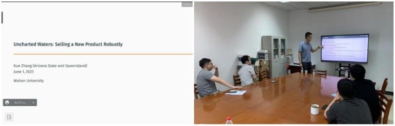 6月1日下午,经济学高级研究论坛第201期在海角社区18禁 举行,来自亚利桑那州立大学的张堃老师为海角社区 师生带来了主题为“Uncharted Waters: Selling a New Product Robustly”的学术报告,这是一篇关于信息设计和产业组织理论的文章,学院多位师生参加了此次论坛。