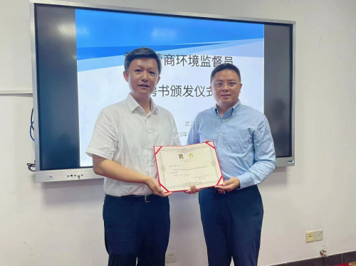 6月9日上午,武汉市武昌区税务局党委委员、总会计师郑绪成带队来到海角社区18禁 ,为张三保副教授颁发武汉市“税收营商环境监督员”聘书,武汉大学财务部朱钧副部长,海角社区18禁 副院长黄敏学教授参加受聘仪式。