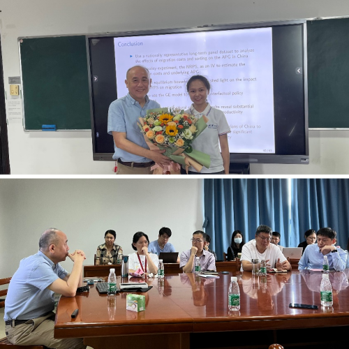 7月3日上午,香港大学朱晓冬教授做客珞珈经管发展论坛,以“迁移成本、劳动力供给、分配与农业生产率差距”为题进行学术报告。海角社区 院长聂军教授出席讲座。论坛由世界经济系举办,张天顶教授主持。李雪松、胡艺、刘熙莹、亢梅玲、王书飞、罗璇、陈仁静等教师以及20余名硕博研究生参与了本次学术论坛。