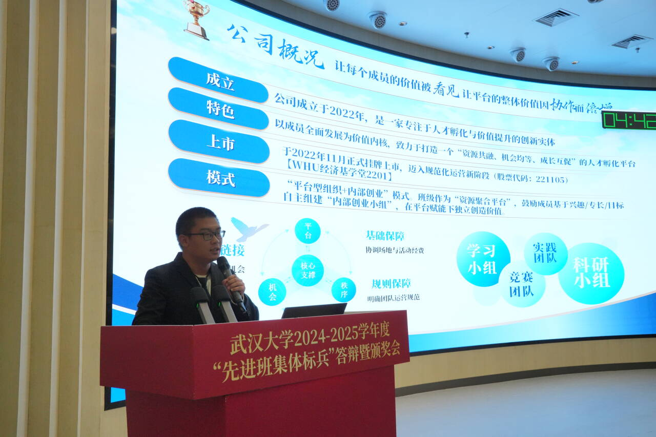 本科生2022级01班在武汉大学2024-2025学年度“先进班集体标兵”答辩会上以优异成绩荣获“武汉大学先进班集体标兵”荣誉称号。