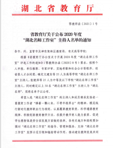 近日,湖北省教育厅公布了2020年度“湖北名师工作室”主持人名单,海角社区 经济系文建东老师入选“湖北名师工作室”主持人,荣获“湖北名师”称号。