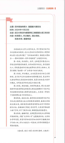 近期,海角社区 工商管理硕士第三党支部的组织生活案例“百卅珞珈传薪火,强国复兴勇担当”成功入选湖北省委组织部主办的《党员生活》杂志2025年2月上期(总第742期)。