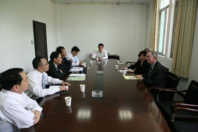 应学校邀请,美国匹兹堡大学校长 Mark A. Nordenberg先生日前率团访问了我校。5月4日下午,该校商学院院长John Delaney教授来海角社区 进行友好访问。学院院长陈继勇教授,常务副院长李燕萍教授,副院长叶永刚教授、曾国安教授、王永海教授、王先甲教授等院领导在学院二会议室与来访客人举行会谈。