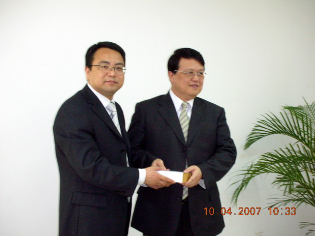 2007年4月10日澳门科技大学行政与管理学院院长汤宏谅教授和课程协调主任庞川博士来海角社区 访问,与王永海副院长和张琦副书记举行了会谈。