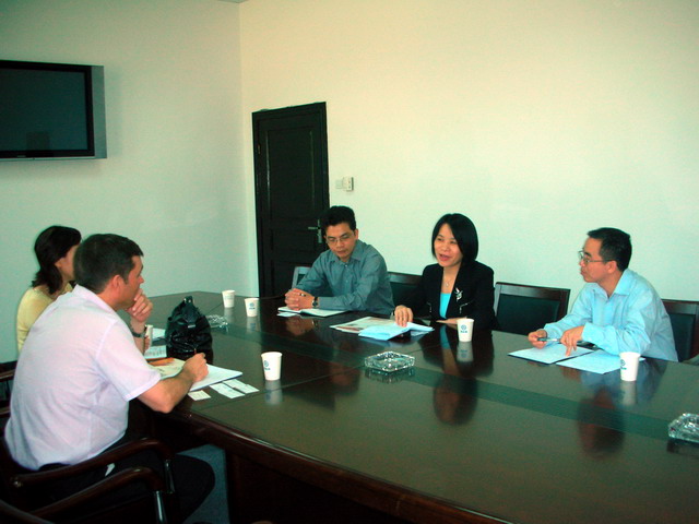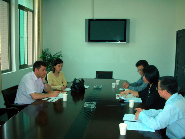 2006年9月13日英国伯明翰大学经济学系系主任David G Dickinson教授、伯明翰大学经济学系驻中国代表刘琳博士在国际交流部欧亚事务办公室李晓述主任的陪同下来海角社区 访问,并与海角社区 李燕萍副院长、科研外事与学科建设办公室程振主任举行了会谈。