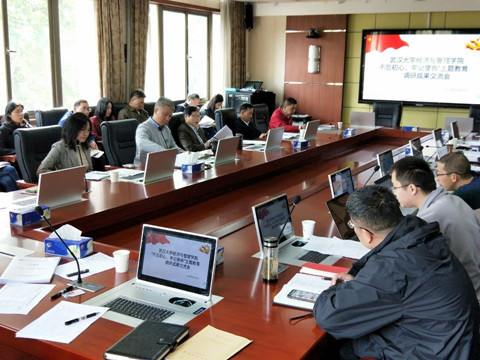 10月28日上午,学院在第五会议室召开了“不忘初心、牢记使命”主题教育调研成果交流会。学校主题教育第六巡回指导组组长席彩云、联络员丁琰鋆列席会议作指导。党委书记杜晓成,院长宋敏,院党委副书记朱剑平、邬明建,副院长汪涛、方德斌、李青原、余振、沈作霖,院长助理郭凛、代军勋交流了调研成果。民革武汉大学主委游士兵,院行政教辅办公室主任、党支部书记及党政办公室有关人员一同参加了交流会。调研成果交流会由党委书记杜晓成主持。