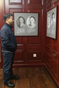 沿着珞珈山拾级而上,一座红瓦白砖的小洋楼矗立在眼前。楼前合影之后,全体成员开始进入楼内参观图片展览。整个展览分为三个单元:第一单元为物外桃源,它意指珞珈山南、东湖之北的这座静谧从容且安逸自在的小洋楼,语出自文学家郭沫若;第二单元为风云际会珞珈山,它再现了武汉大学当年西迁乐山,珞珈山校园成为国民政府军事委员会所在地后,周恩来、郭沫若在此从事的抗战指挥和宣传活动;第三单元为寓居“十八栋”和“十八栋”的主人们,它真实记录了周恩来夫妇下榻及当年入住此处震烁一时的学者,选取介绍了30名教授的风采,以纪念“十八栋”曾经的辉煌岁月。