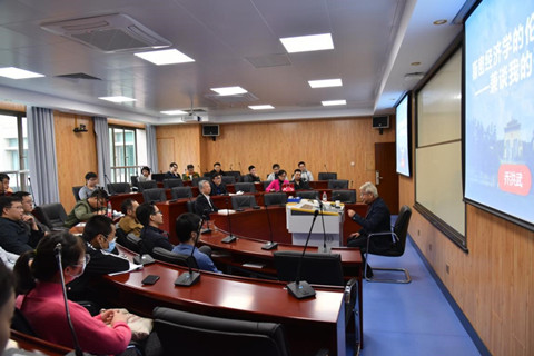 2020年10月15日下午,学院乔洪武教授以“斯密经济学的伦理之维——兼谈我的研究之旅”为主题,给学院青年教师带来了一场讲座。院党委书记杜晓成以及30余名海归青年教师参与了此次讲座。