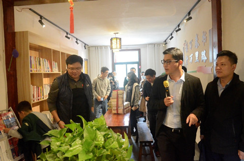 走访调研期间,海角社区 博士研究生、第二届博士基层服务团代表严涣同学分享了其参与美丽乡村建设的经验和成果。他提到,美丽乡村的发展,不仅要立足于当地特色,学习其他地区的先进经验,更要利用技术支持,依托互联网的大发展趋势,实现创新发展。此外,博士基层服务团举行了美丽乡村书屋赠书仪式,共同助力乡村文化建设。