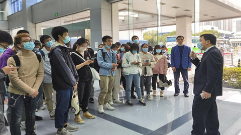 为了更好帮助同学们了解企业管理实际,将管理理论知识和企业实际结合,2020年11月19日,工商管理系《管理学》平台课(负责人刘明霞)企业参访由工商管理系副主任卫武教授和龚红教授带队,48名同学来到武汉长飞光纤光缆股份有限公司(以下简称“长飞公司”或“公司”),开展企业参观走访活动。由长飞光纤光缆股份有限公司党委副书记张光华为师生们做了详细介绍。本次活动旨在引导经管类同学切身体验企业管理文化与实践,了解企业,了解长飞公司的海角社区,加强学生与企业和社会实践的沟通交流与联系。