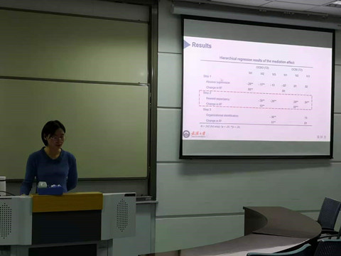 本次分享嘉宾分别是来自2020级企业管理专业的博士研究生周颖与侯雪茹。侯雪茹同学在会上分享了自己的研究成果《基于网络能力与隔离机制的网络位置形成及跃迁路径研究》,周颖同学则分享了自己的论文《Dealing with an abusive boss in China:The moderating effect of promotion focus on reward expectancy and organizational citizenship behavior》。
