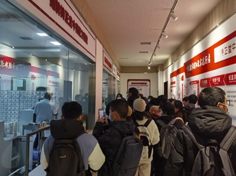 山南园区参观结束后,师生们来到劲牌总部,工作人员首先带领师生来到劲牌历史沿革展示墙,通过劲牌包装的变化,同学们进一步了解了劲牌的发展历程。紧接着,师生们来到成品酒的生产车间,巨大的车间面积和高度自动化的生产线让同学们对成品酒的生产效率惊叹不已。参观生产车间完毕后,工作人员带领师生来到一楼品酒,讲解员热心地向师生们介绍白酒的种类以及鉴别白酒优劣的方法,现场氛围热烈。