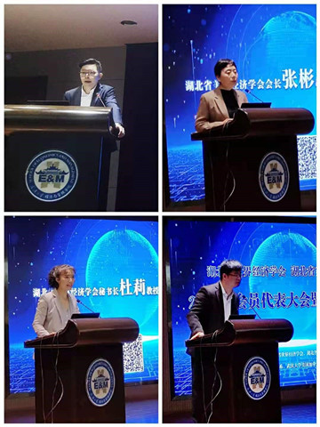 (武汉大学齐绍洲教授、中南财经政法大学钱学锋教授、湖北大学肖德教授、华中农业大学李谷成教授发表主题报告,华中科技大学刘海云教授主持大会主题报告)