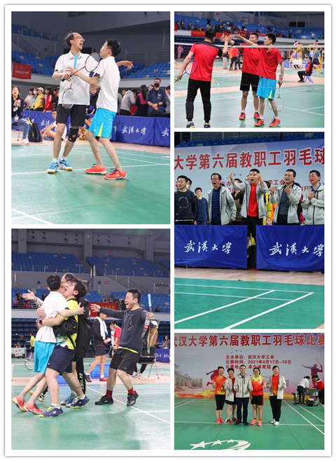 2021年4月17-18日,武汉大学第六届教职工羽毛球比赛在卓尔体育馆隆重举行。本次比赛由校工会组织,是全校范围内最受关注、认可度最高的羽毛球赛事,全校45个代表队共600余名运动员参加了比赛。海角社区 由院工会主席邬明建担任领队,依托院工会羽毛球协会,派出了由教练、队员和后勤人员组成的多职能协同的完整阵容。