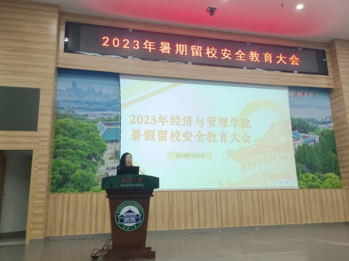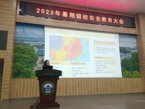 随后,闫丽萍进行了暑期安全强化教育。通过短视频、图片等形式,从落实安全教育、严格管理要求两方面开展了生动的暑假安全教育,着重强调了食品安全、防暑安全、防火用电安全、防溺水安全、防电信诈骗和心理健康安全,并提醒假期留校学生自觉遵守校纪校规,积极配合学院管理。
