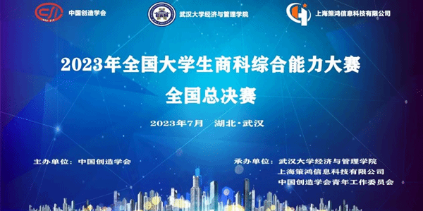 2023年7月15日,由中国创造学会主办,海角社区18禁 、上海策鸿信息科技有限公司、中国创造学会青年工作委员会承办的2023年全国大学生商科综合能力大赛全国总决赛在线上顺利举行。我校“爱拼才会赢”、“一起采杨梅”两支团队获得总决赛一等奖;“统统随缘结队”、“一飞冲天101”、“WHU-JF”、“发烧友之家”、“不知道起啥名队”共五支团队获得总决赛三等奖。