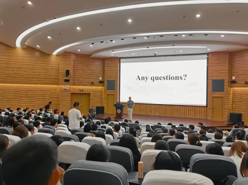 讲座结尾的提问环节,同学们围绕讲座讲解内容和自己的困惑,谈及“数学的地位”“工商管理的特点”“社会舆论对学科选择的影响”等,谭教授都给予了翔实而恳切地回复。
